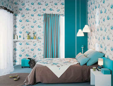 亮色系的现代简约风格婚房,空间设计其实还是很简单的,简单的色彩搭配,简单的飘窗。背景墙,粉色印花壁纸,浪漫清新的调调。这款婚房卧室装修效果图,还搭配了简单时尚气质的吊灯。