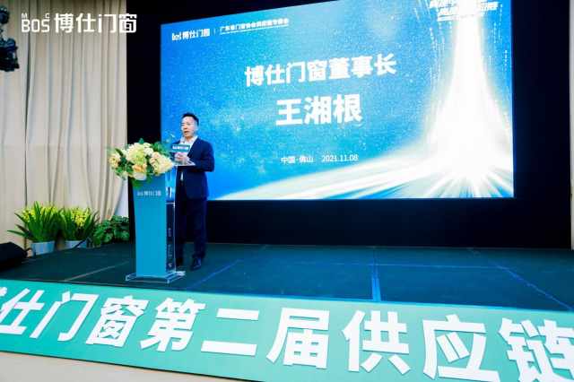 王湘根董事长相信博仕取得如今的成绩,离不开全国广大供应商的大力支持。他同时指出当下门窗行业供应链面临的难点、痛点、堵点问题,希望通过论坛与同行朋友们一起探讨供应链转型的新趋势、新挑战、新要求和新路径!