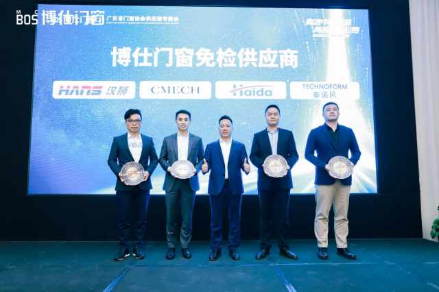 好的门窗产品离不开优质的配件供应商,汉狮、希美克、海达、泰诺风以其优秀稳定的产品质量,荣获博仕门窗《免检供应商》荣誉。会上,博仕门窗董事长为合作获奖单位伙伴颁奖。