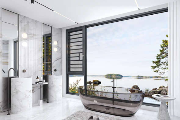简洁有型的窗框和大面积通透的玻璃带来无比开阔的视野,赋予空间更多的想象,也为建筑增添了艺术感。皇冠125系列断桥系统窗彰显出独特的品位与审美,同时传递着“美好人居”的生活理念。