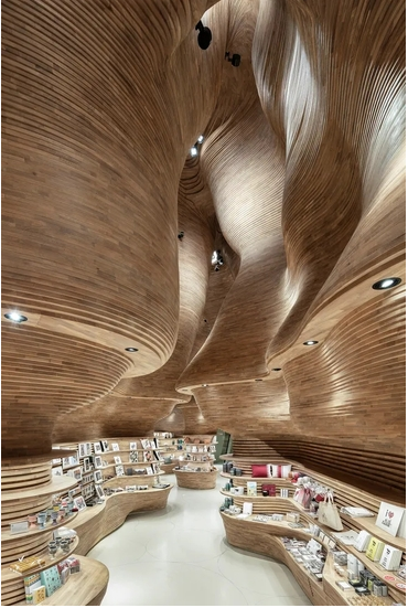 Whether the artificially flexible lines in dragon dancing or the natural texture of mountains and rivers, they all have a flowing beauty. Designers apply it to the smallpox structure, using bamboo sheets to create flowing water texture, graceful flow of shape, has the potential of quiet thinking. Like Chinese cursive scripts, there is beauty in the frenzy, which breaks through the conventional structure. It not only brings the rhythm of natural flow to entertainment places, deepens the high quality of space, but also brings unpredictable surprises to the sight.