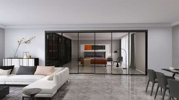 今年,德立还进行了品牌升级,为消费者提供全景空间解决方案,不仅推出了多个系列的全景门,而且在隐藏式预埋设计上具有很大的产品技术优势,比如:联动推拉系统,令开门空间高达75%;革新的上轨道设计,内置阻尼缓冲装置,顺滑开闭且安全静音;通过高精定位轮实现无下轨道的设计,轻松解决进出时被绊倒、传统推拉门轨道难清洁打扫的烦恼。可以说,德立全景门隐藏设计+联动推拉+无障碍畅行,演绎现代极简生活方式,为向往的美好生活带来了全景式家居新体验。更贴心的是,户主还可根据需求及户型尺寸进行定制。