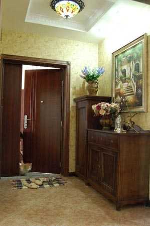 没有安排固定的门板来保护卧室的私密性,最后选定了用珠帘作为装饰在卧室门口做了软性的隔断,成就了一个别有情调的卧室房门。
