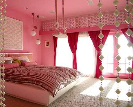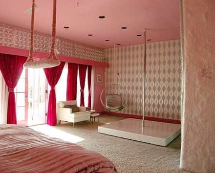 如果说前者适宜结伴入眠,这个卧房就是独处的专利。墙面和床品上的线条花纹如同流水惹人幻想;粉色至红色的渐变运用,尽管色调清淡,却透着活泼而不失温柔,营造家居梦幻境界。