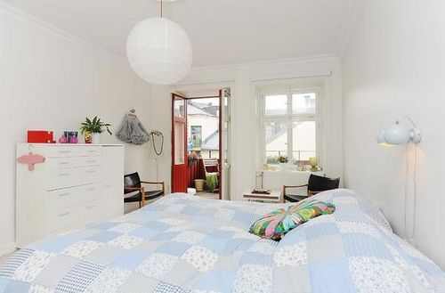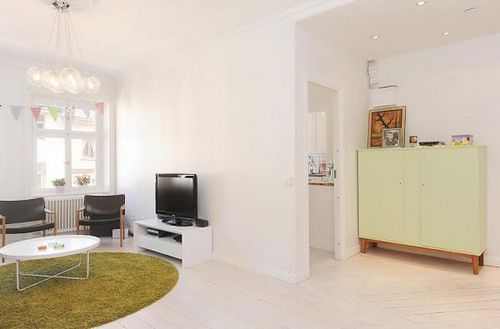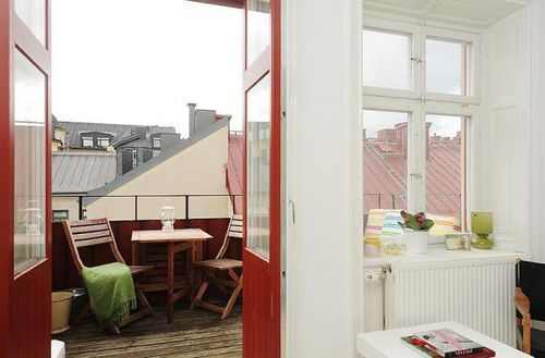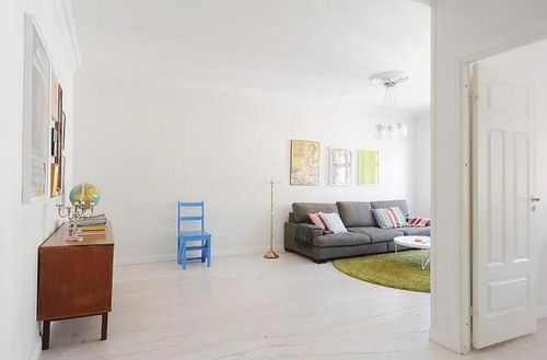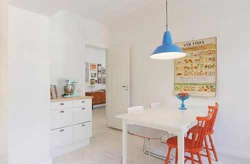 大部分瑞典房产代理公司的案例都是以整体大白和木制为主调子,似乎千篇一律,不过期间通过家具,软装或者壁纸零星装点的鲜艳色彩却能赋予每个空间特有的个性。本案运用了不同纯度色彩的混搭,古色古香的家具陈设和怀旧海报相当有感觉。