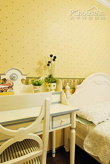1.根据业主的要求,主卧室留出位置摆放书桌椅;卧室的背景墙挖出收纳空间,低矮的飘窗也完美地满足卧室的储物需要;卧室的飘窗低矮,可做成储物式,同时利用来做一个小型的休闲区。