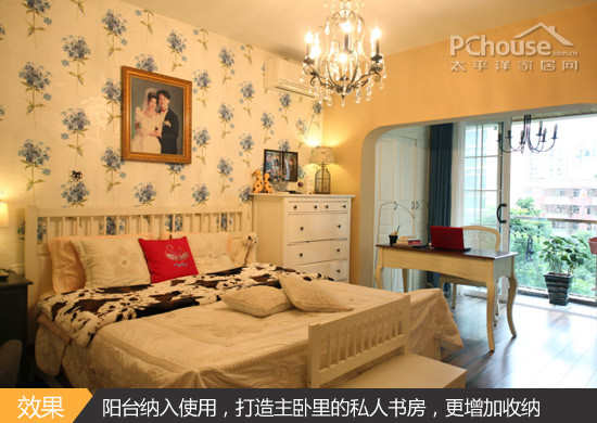 May的构思:主卧沿用简约北欧风,因有了一楼的阳台,希望增加室内书房的May借用了二楼大部分阳台空间,打造私人书房,更增加了收纳。