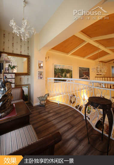 May的构思:把阳台纳入使用的另一原因是营造与休闲区的流畅接洽,这个休闲区只能通过主卧进入,是男女主人独享的一角景致。往前可俯视复式客厅,往后可观望窗外景致。这个角落的打造,又再一次为复式之美加分。