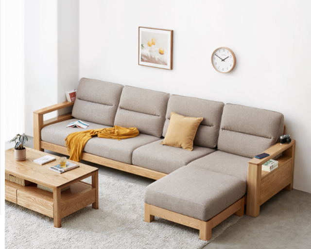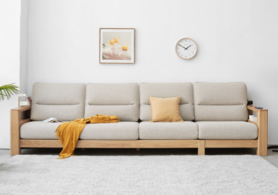 客厅里的是源氏木语白蜡木沙发,甄选北美进口FAS级白蜡木作为主材,这种木材质地坚韧,高密度且结构稳定,不易开裂。源氏木语突破市场常规,坚持使用100%纯实木框架,拒绝人造板、贴皮板,从源头上解决甲醛问题。搭配分段式高靠背,护腰的同时也护颈,更有60CM宽敞坐深,坐姿随心换也不觉得累。规格多大9种,考虑到客厅空间,我俩选择了大三人+脚蹬规格。