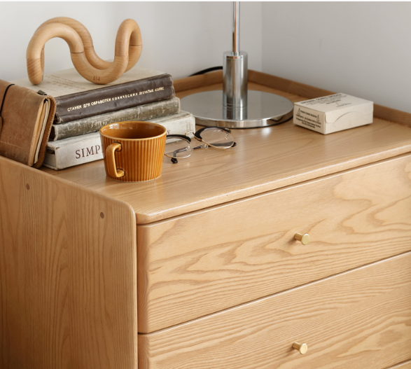 源氏木语白蜡木组合斗柜同样甄选北美进口FAS级白蜡木作为主材,使用大板直拼工艺,纹路平衡美观。表层以植物木蜡油涂抹,保留原木自然触感,更健康环保。圆润边角加上三周防掉挡边,台面置物也放心。