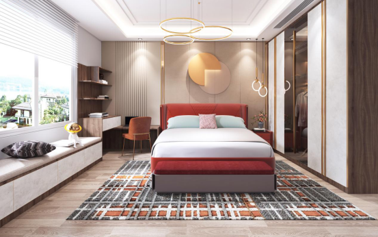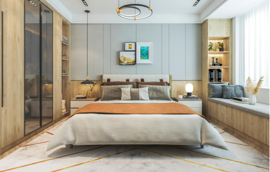 卧室的卡座大多是利用飘窗进行改造的,窗边采光良好,在这里定制卡座作为休闲区最适合不过。两侧可以做成半开放式储物柜,不仅可以摆放艺术品增加空间格调,还可以随手拿放水杯、书籍。