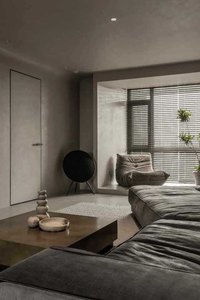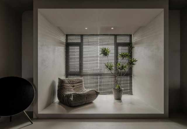本案是位于繁华的北京城,设计师以侘寂美学为出发点,运用以静制动、以空代满、以残为美的东方哲学,褪去城市及空间繁冗华丽的外壳,让空间回归至与人的内在共鸣