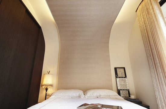 编辑点评:圆弧造型板修梁的长辈房,配上刻意增加皱折度的窗帘软件,质感份量大幅提升。