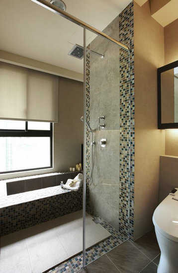编辑点评:考虑到未来女主人的喜好,采用饭店式配置搭配华丽的马赛克,瀑布龙头泄水营造惬意氛围。