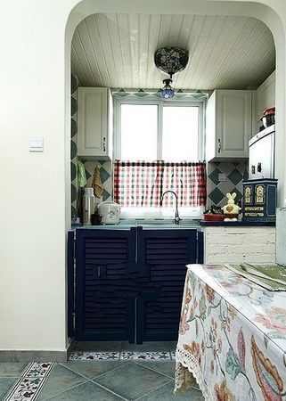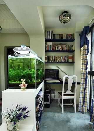 这里是进门处边上的一个小的工作台哦。中间就隔着鱼缸,格子窗帘,薰衣草,特别有感觉吧。