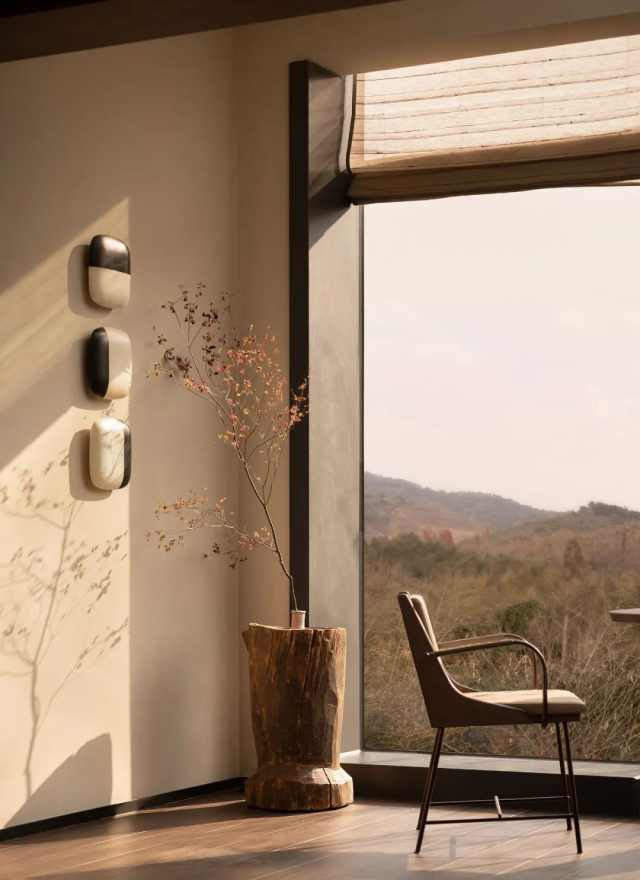 自然的和谐、人文的力量、生活的光芒,皆是众睦设计营造空间与构建场景时的纯净语言。在设计师的笔下,结构不只是结构本身,器物不只是美学的化身,结构与器物的构图以看似随意的比例、不循常规的秩序,实现了自然从外到内的转场,以及自然材质的器物化形、赋意。人凿或天开,正如抽象挂画与四季景框处于同一场所,于是艺术与自然的交集浑然一体,融入理想的情境之中。