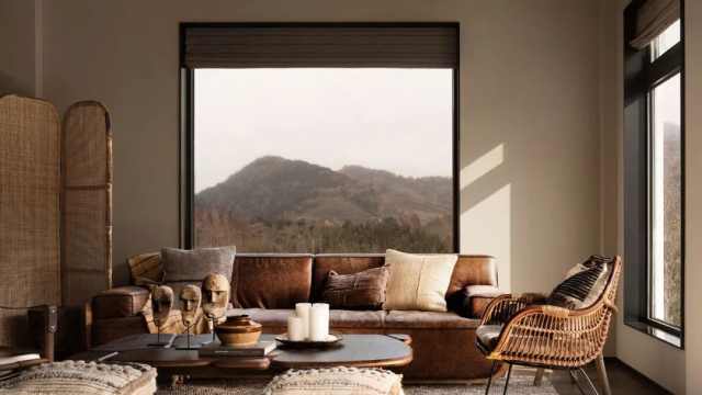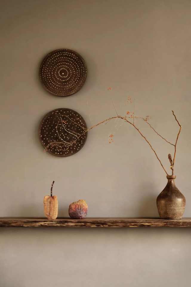 山中采撷的花枝、树下拾取的青苔、由老木头打磨出的矮凳、藤编屏风、竹编单椅、麻布质感的地毯与抱枕......灵动的当下场景与丰富的过往底蕴在光影中交糅,安静的场域氛围渲染完毕。