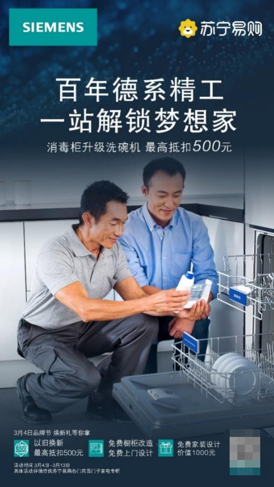 此外,为响应国家节能环保的倡导,同时满足消费者对产品升级的需求。自3月15日起,西门子家电借品牌节之力,以“旧机换新机,旧机可抵扣”的方式鼓励消费者将自家消毒柜“换新”为更便捷、更节能的洗碗机,并提供橱柜改造、机器安装等免费专业服务,为消费者量身定做梦想厨房,助力无忧换新。