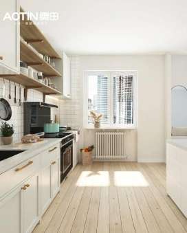 凹凸有致的白色面板营造出简约田园风格,令人在烹饪时保持身心愉悦。根据储物习惯,自由组合底柜、吊柜、搁板柜,满足家庭的实际需求,玩转厨房收纳。