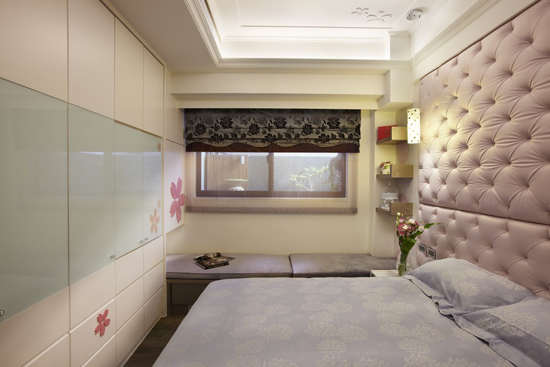 编辑推荐:喜欢樱花女孩,设计师在柜面与天花板都设计入樱花图腾,墙面也选择粉色系,朵朵花开的图腾壁纸,烘托出女孩般的粉嫩气息。