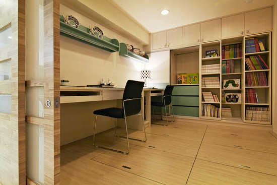 编辑点评:为将凌乱的书本收拾妥当,特意规划开放与封闭式的书柜,使喜爱阅读的女主人,能有干净清爽的书房环境。