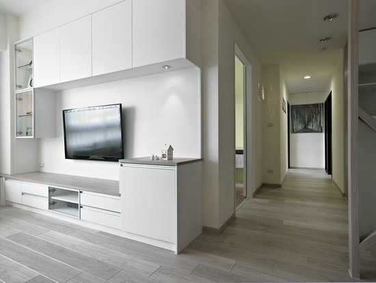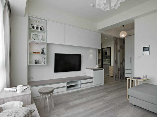 编辑点评:影音柜宽度的些微缩减,放宽走道的动线,使居住者活动空间更舒适。