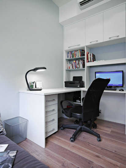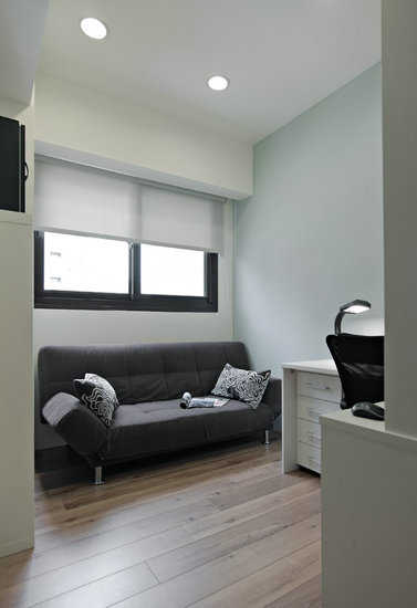 编辑点评:灰蓝色的男主人书房,以机能为主,预留未来改为小孩房的弹性需求。