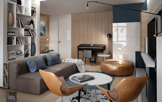 编辑点评:设计师在墙壁设计多个不规则陈列架进行装饰,产生隔断作用的同时还提高空间的收纳性,增添了空间的立体感和层次感。凹凸凌乱的墙壁满载了各种生动表情,营造不一样的居家氛围。