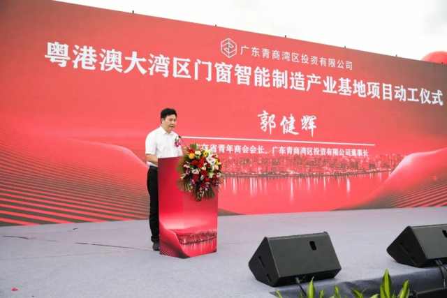 仪式伊始,广东省青年商会会长郭健辉介绍了“粤港澳大湾区门窗智能制造产业基地”动工项目情况,表示青商湾区希望能与更多青年企业家建立长期、互惠交流机制,助力粤港澳大湾区城市融合发展。