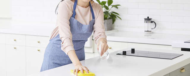 3、人造石台面。人造石的优点:耐磨、耐酸、耐高温、防污、防漏。缺点:外观纹理不自然,烫发性不强,价格高。日常维护:肥皂水可去除大部分泥土和污渍。与强烈的化学物质接触后,迅速用水冲洗表面。
