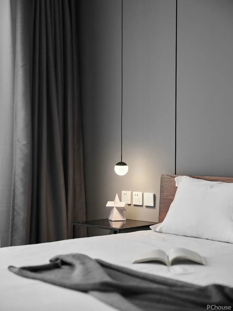 设计师林上淮采用了纯粹且克制的现代极简设计手法,墙面、地板、暗踢脚……空间之中大片的黑白灰,让居住者从踏入家门的那一刻起,便开始回归宁静,会慢慢放下疲惫,直到毫无保留地卸下铠甲。