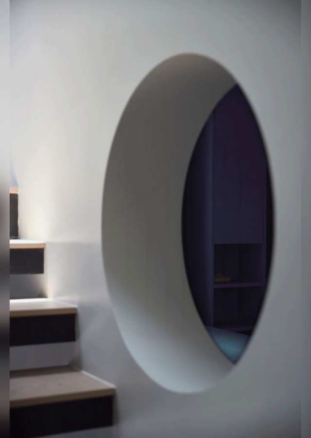 每天清晨醒苏的好心情,与第一缕阳光的倾泻偶遇,点燃了一天的小确幸。立面墙体一扇小窗的设定,是一处点睛之笔。如太空船舱的形态,极度适配于小朋友的想象力,让攀爬的意趣,又多了一处具象之所。