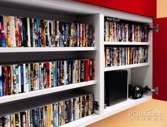 安装在电视区上部的大储物柜,拥有超大容量。储物柜内部装有可调节的隔板,可以根据物品的大小进行调节。不仅能把游戏和电影都放进去,连音响都可以装进去。