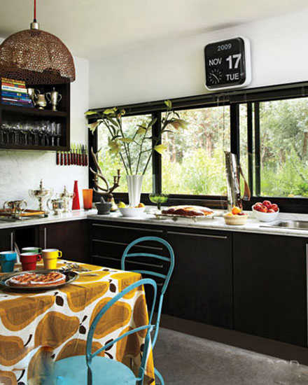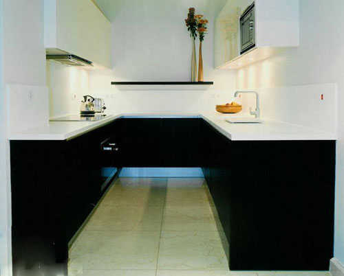 小户型不敢奢望有独立的餐厅,那就把餐厅和厨房合二为一,这样就让小户型也有了足够大的厨房空间。空间大了,感觉也亮堂了,想装修成黑色系的厨房也就不成问题。