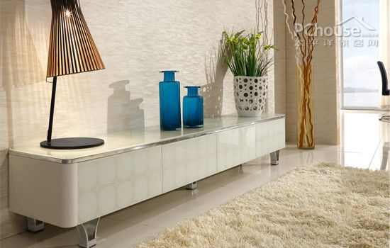 同一系列的电视柜也有着清新的淡白色,格子纹理更是增添了一丝时尚感,一眼望去就被它的艺术气息所吸引。