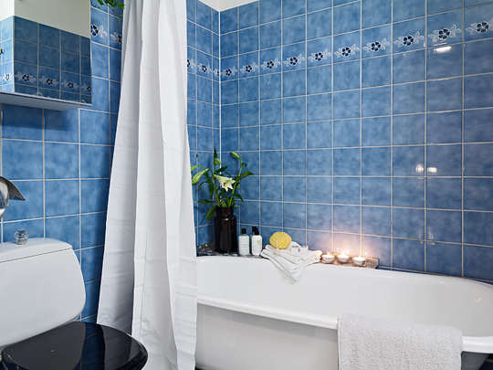 编辑点评:白色的浴缸边缘可放置盆栽和洗浴用品,方便拿取的同时还凸显空间的收纳功能。具有些许地中海风格的瓷砖与白色浴缸相对比,产生了视觉冲击力,还提高空间的立体感和艺术感。