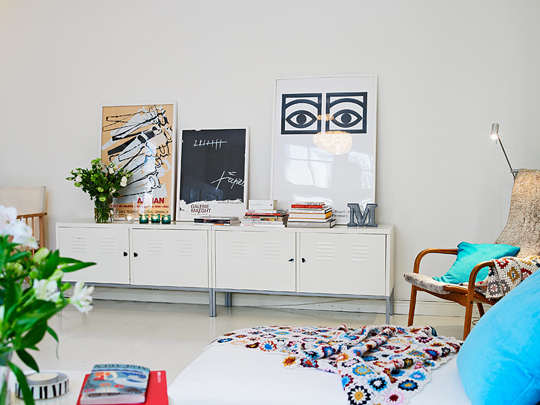 编辑点评:设计师将两个一模一样的杂物柜并排而放,增添空间的对称美。柜子上面还可以放置杂物,增加了空间的收纳功能。