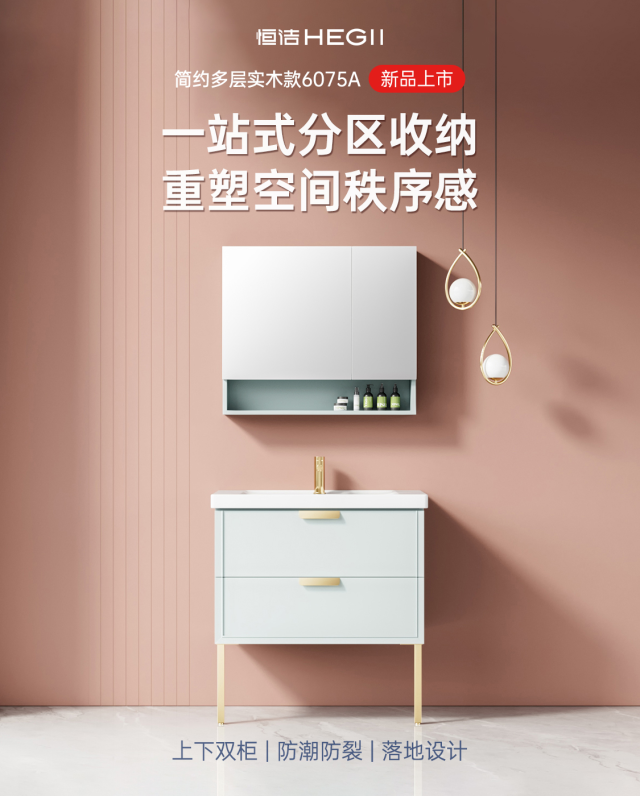 想做个精致的都市达人,但是卫浴空间不给力:日常用品多、存储空间不足,哪怕经常整理,物品收纳依然没有规律,卫浴空间凌乱不堪。恒洁新品浴室柜6075A的设计核心是将收纳性和美观性均衡结合,同时,空间感受不割裂。