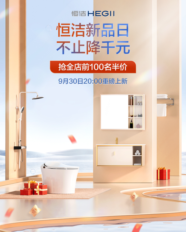 恒洁新品日于9月30日20点正式开抢,此次新品日,恒洁不止在产品上做出了重大的突破,在店铺优惠上更是做出了重大让利,旨在让更多的消费者能够体验到卫浴该有的功能性、舒适度和性价比。近期打算焕新卫浴的朋友们,上京东,搜索恒洁,参与9月30日恒洁京东新品日,好物多多福利多多,千万不要错过!