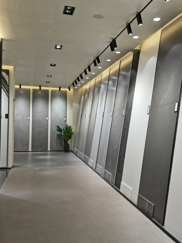 门店一楼以顺辉大舍集思产品系列展示为主,通过同系列、不同色彩的产品展示,丰富了产品应用搭配的创作性和选择性,同时大规格的直板陈设,更直观也更聚焦于产品的美感,让产品自己代言。