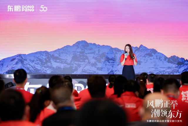 东鹏控股执行总裁兼瓷砖事业部总裁何颖女士作开场致辞。何颖表示,人们对美家的需求是永恒不变的刚需。从材料品牌向服务品牌跃升,东鹏集团回归消费本质,在品牌、门店、产品、服务、效率等维度进行全面升级,聚焦四大业务抓手,分别是超级产品-零售新品及工程解决方案、超级空间-新国潮上市、超级服务-东鹏超会搭及装到家一站式服务、超级体验-全新SI发布,将全面以市场为驱动,不断延伸服务链条,为消费者创造价值。