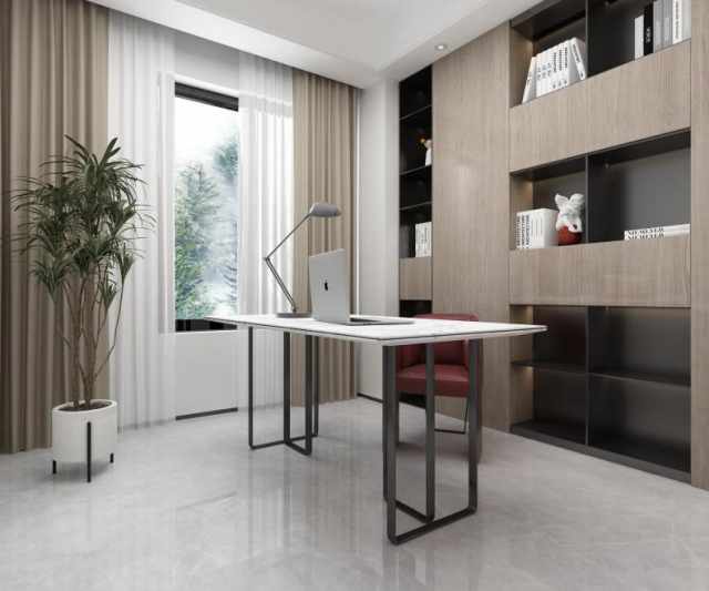 原木的书架、清新的绿植、创意的摆件,书房以不同材质的相互碰撞,实现简约与多元的平衡,通过丰富的视觉感,巧妙地诠释空间的立体与层次,透露着岁月静好的宁静。书香卷气、返璞归真,一场关于美的盛宴盎然展开。