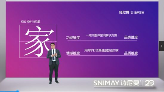 作为用户了解品牌的端口,诗尼曼品牌赋能中心总监刘雷始终关注着市场对于品牌的反馈。他认为随着用户消费意识提升与消费形态的变化,等待诗尼曼更多的是新一轮的品牌价值沉淀;此次经销商大会刘总以“诗尼曼的高净生活“为主题,从品牌战略到内容玩法到渠道打法三个维度出发,以全年度贯穿的品牌活动助力营销,打通线上线下渠道,让品质、环保20年以创建一种高净生活的形式全新出发,赋能经销商朋友实现高单值的增长,蓄力长效经营;