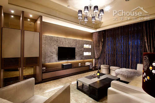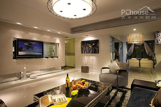 2、客厅与次卧之间的3米墙面作为电视背景墙,另外一侧较大的墙面作为沙发背景墙,可着重打造观赏型或收纳型的电视墙。