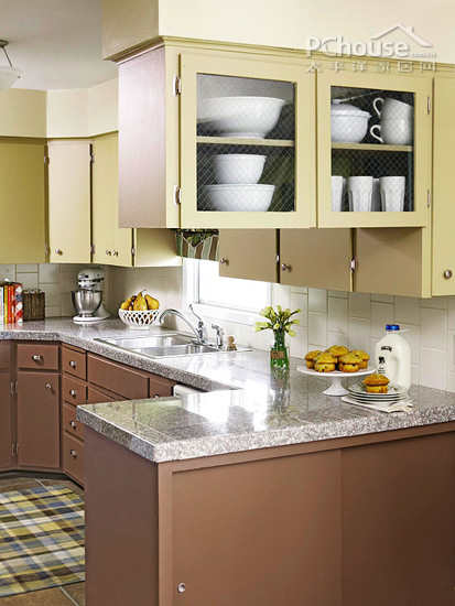 厨房很小,考虑在厨房上方安装额外的一排橱柜,可以增加额外的收纳空间,同时充分利用转角底层等空间,还能把不常用的厨房用具隐藏收纳,另外可把平时不注意的边角空间收纳不常用餐厨工具。