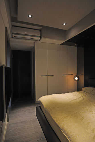 编辑点评:以对称茶镜与深色彩度的床头设定,打造精品旅店般的质感空间。