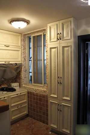 厨房,窗户上的花边是一个一个贴上去的
