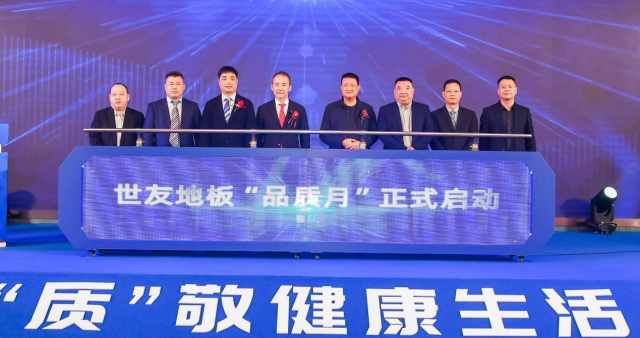 世友地板副总裁李玉虎现场解读世友“高品质”:以高品质产品为载体,以高品质服务为纽带,构建高品质消费体验过程,创造高品质家居生活空间。以四个高品质打造世友“品质月”,世友地板绿色品质大使王石、董事长倪方荣、总裁倪月忠以及公司高层代表、经销商代表,于现场隆重启动世友地板“品质月”。