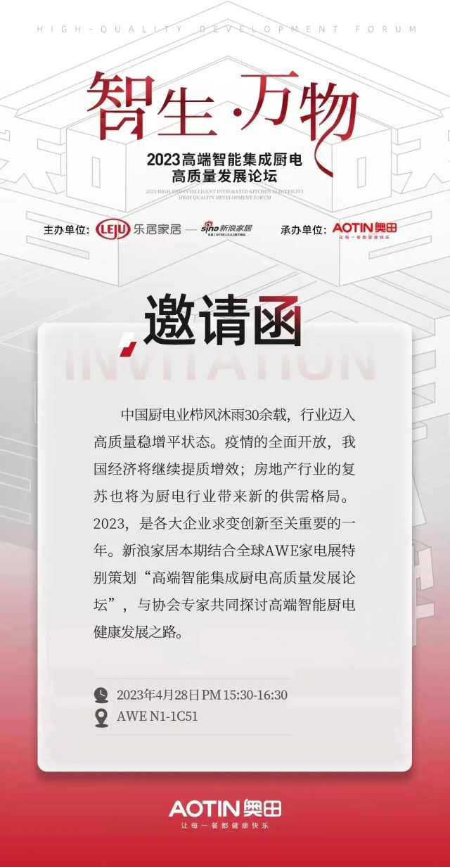此次展会奥田还为大家带来了精彩互动活动,不间断现场美食烹饪体验;现场打卡分享白色集成灶,可获得精美礼品更有机会赢千元大家,名额有限速速来打卡;4月28日下午3:30,联合新浪家居,针对全球AWE家电展特别策划“高端智能集成厨电高质量发展论坛”, 奥田N1-1C51恭候大家莅临~