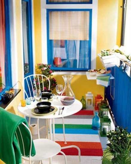 不要墨守成规,以为阳台就只能是晒衣服,小户型空间有限,你完全可以将它变成一个完美的小餐厅。简约现代的白色餐座椅是小阳台的不二选择,搭配多彩的条纹地毯,整个空间变得活泼起来。绿植点缀,餐厅活力有生机。